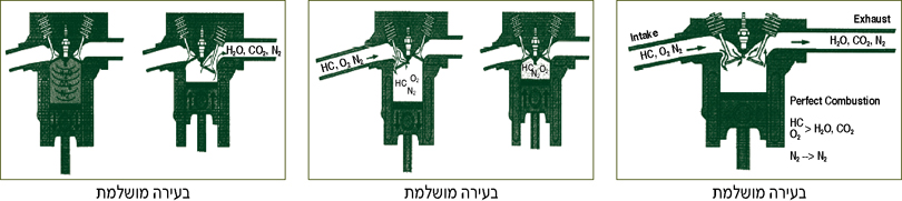 כאשר המנוע תקין ותנאי התערובת מושלמים יתרחשו התהליכים הבאים: